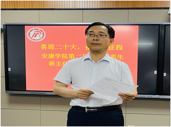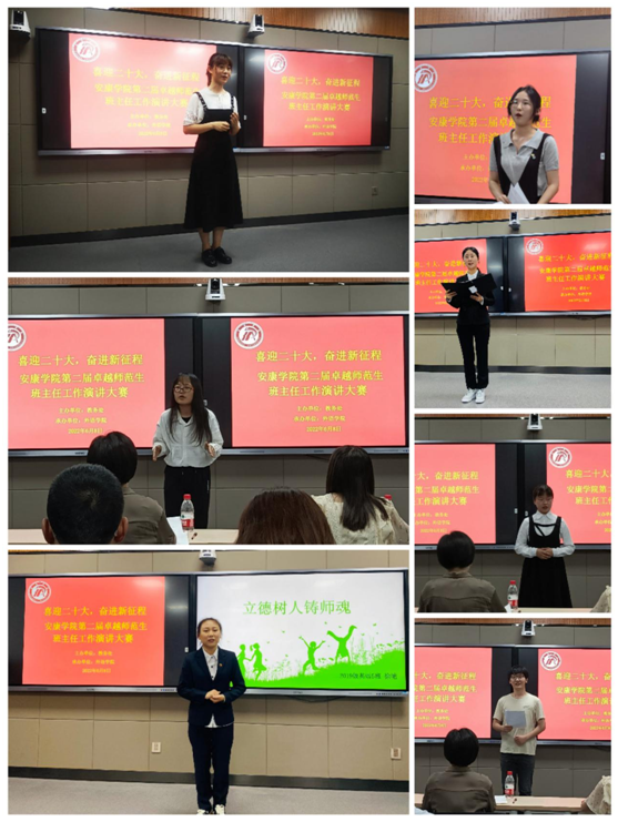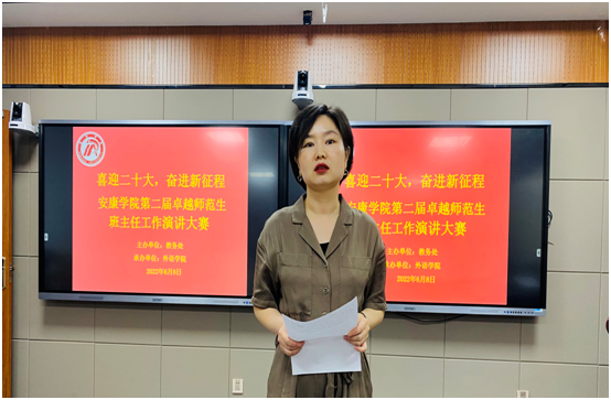为了更好地贯彻国家关于立德树人的教育目标,切实提升新葡萄官网师范生班主任职业能力,培养“四有”优秀班主任,6月8日晚,由教务处主办、新葡萄8883官网AMG承办的“喜迎二十大,奋进新征程”新葡萄8883官网AMG第二届卓越师范生班主任工作演讲大赛在江南校区师范生职业技能训练中心4204举行。教务处副处长陈国杰,团委副书记张慧,信息化建设与管理处副处长崔炜荣,新葡萄8883官网AMG班子成员,汉滨高中西校区优秀班主任刘娟、新葡萄8883官网AMG教师教育教学团队教师,参赛选手及英语教师卓越班成员参加了此次活动。