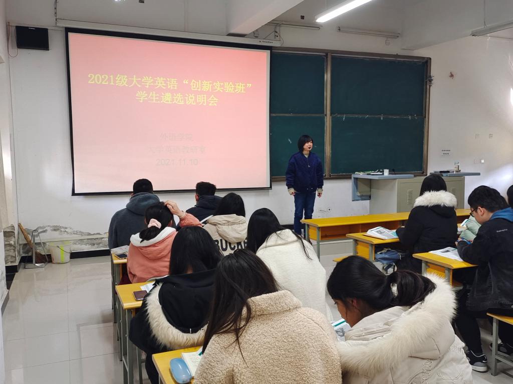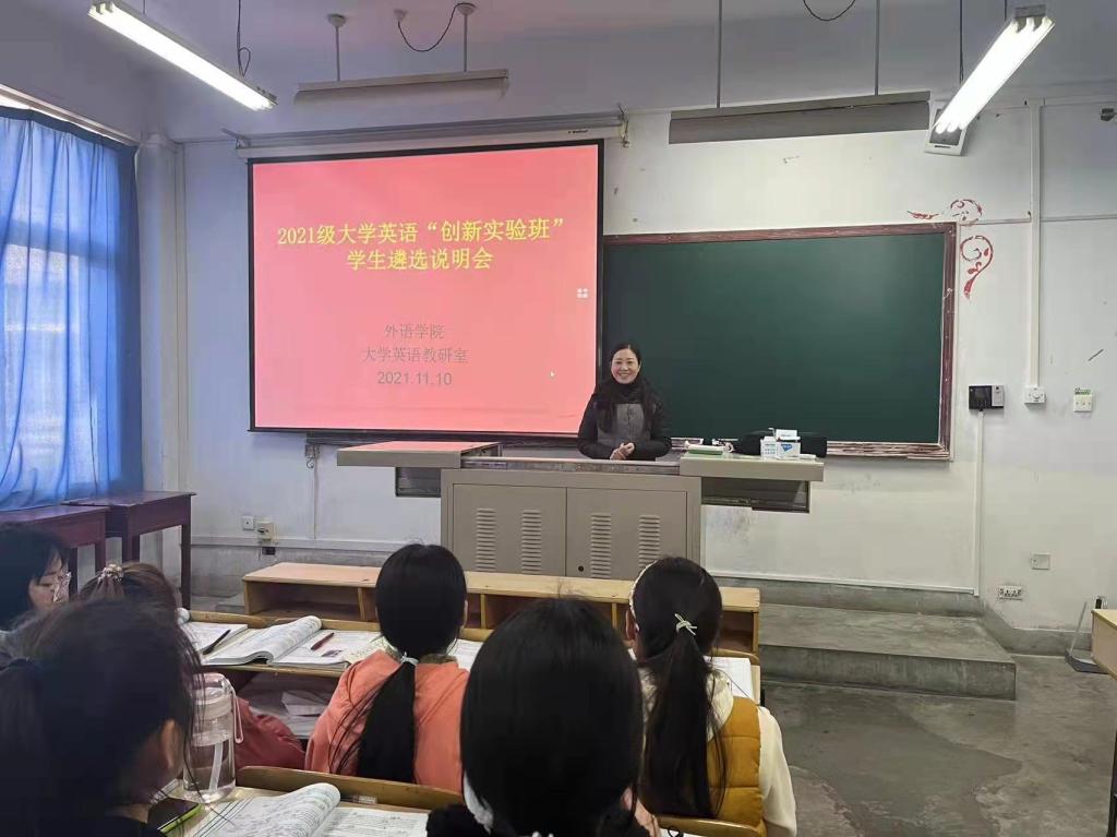 经过前期广泛宣传动员、学生自愿报名、学生大学英语学习能力和学习动机初步评估、与报名学生深度访谈等,在综合学生大学英语学习实际基础上,最终遴选出付婷婷、张恩培等33名同学进入文学与传媒学院2021级大学英语创新实验班,李中秀、李嘉欣等36名同学进入数统学院2021级大学英语教学创新实验班。