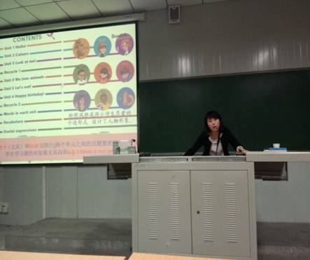 4月23日晚上,陕西省中学英语教学能手、汉滨高级中学英语骨干教师李庆慧老师应邀来到外语系,为英语专业2014级专升本一百余名师范生做了题为《小学英语教学经验交流与案例探讨》的专题讲座。外语系英语教师教育教学团队老师参加了讲座。