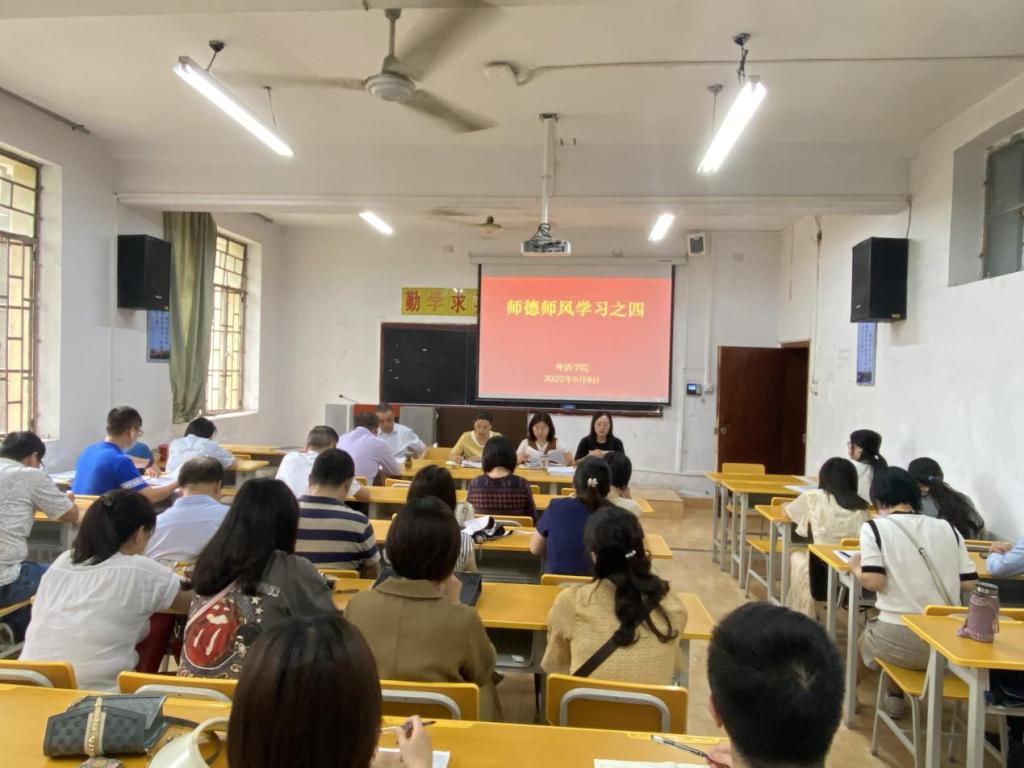 6月8日下午,我院在6107教室召开师德师风建设专题学习会,学院领导班子、全体党员干部、全院教职工参加了会议。会议由党总支书记肖红香主持。