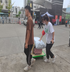 迎新现场,学校领导班子对迎新接待站,报到注册点、面试点等各项工作悉心指导,确保新生都能安全有序入学。志愿者不畏风雨,积极投身迎新一线,为新生搬运行李,引导新生完成入学手续办理等。期间,院党总支书记肖红香带领辅导员多次深入学生宿舍看望和协调有关工作,并与新生亲切交流,详细了解学生入住情况,并就疫情防控,人身财产安全等方面与新生进行了强调。